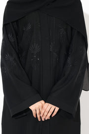 Black Layered Open Abaya with Snap Buttons – Modest Long Sleeve Abaya