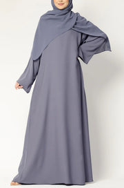 Elegant Purple Grey Flow Abaya with Matching Hijab